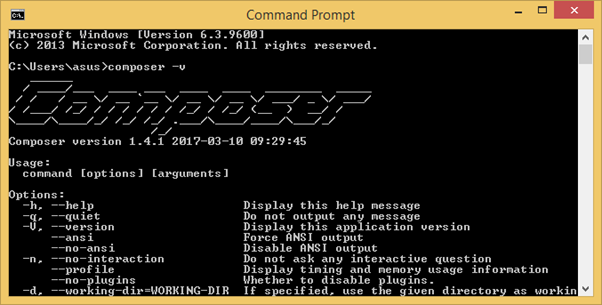 ketik composer -v atau composer < doang
